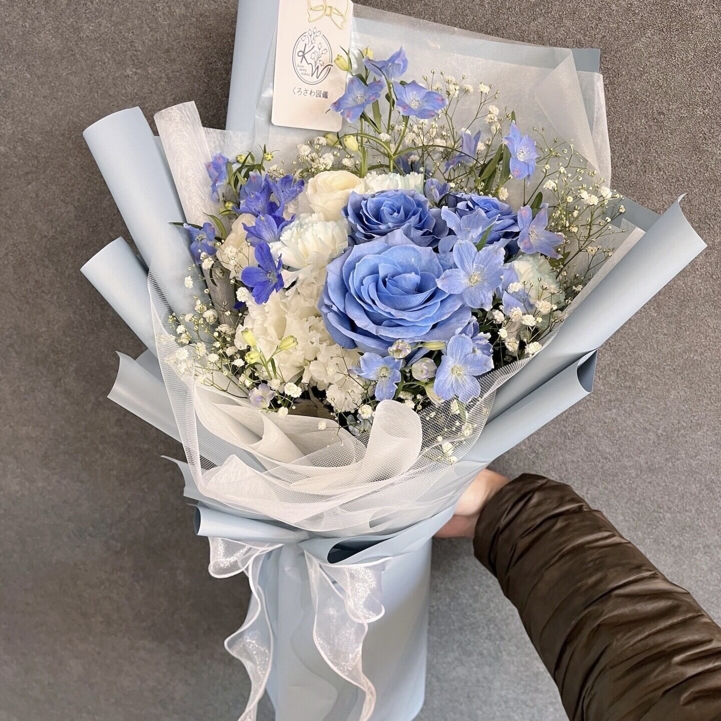 選べる色みが楽しめる「韓国風ブーケ」は、白ベースで淡い色合いの花々が特徴です!透明感のあるラッピングが施されており、見た目にもかわいらしい仕上がりとなっています。特別な日のプレゼントとして、心温まるメッセージを伝える一品であり、記憶に残る瞬間を演出します。